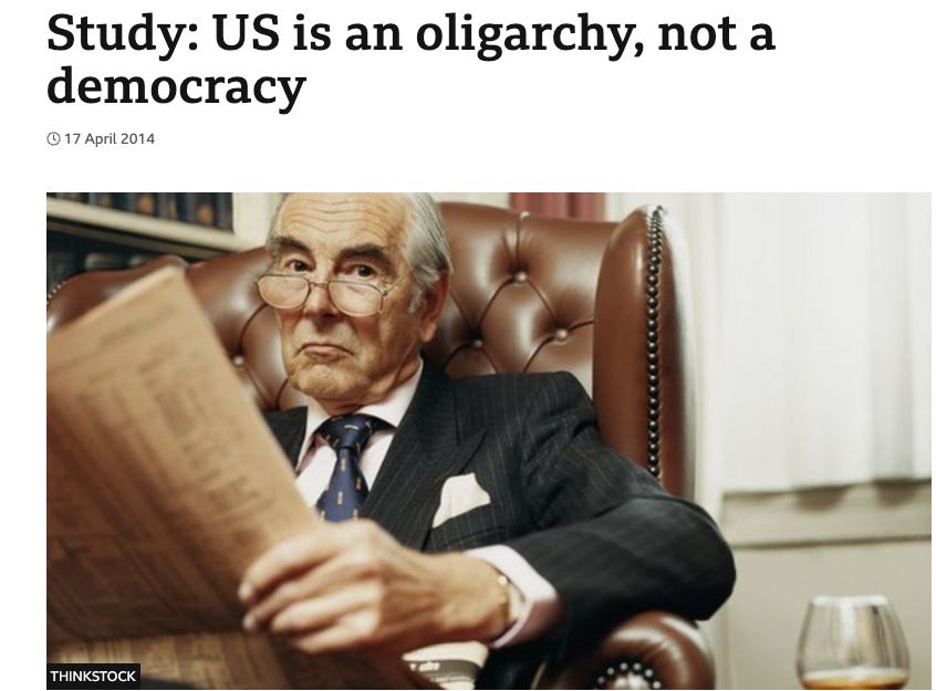 In fact, studies have shown that the US stopped being a democracy years ago. America is now most decidedly a plutocracy whose government responds only to the will of the top elites.